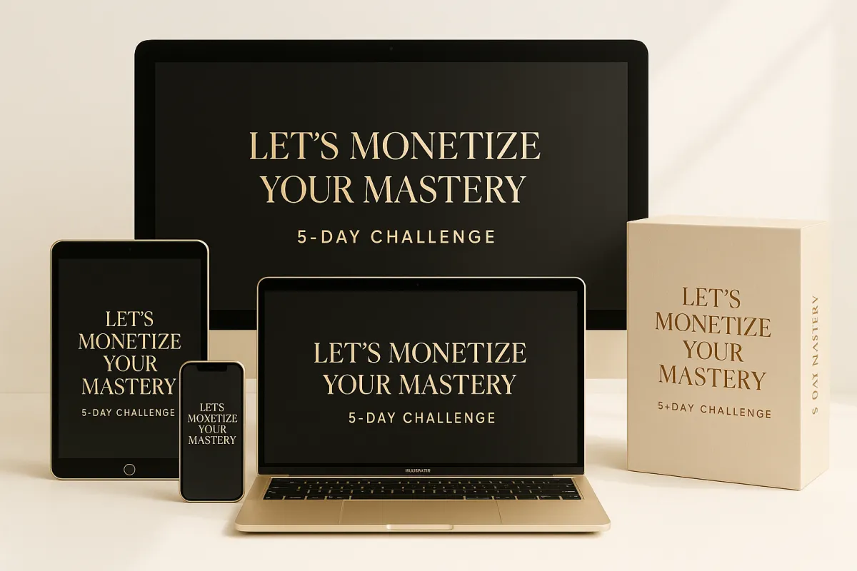 The “Let's Monetize Your Mastery 5-Day Challenge” is your gateway to doing just that - scaling your impact without sacrificing your identity or integrity.
